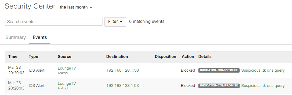 I have the same. I have an event for one of my wired clients in security center. But if I go to the normal event log in Network-wide > Event-log can't find that event either. Whatever I select as source in the drop-down (for switches or for security appliances).