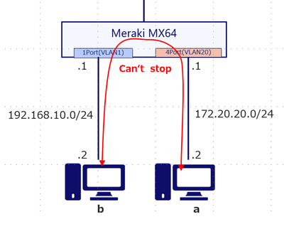 I wanna prevent communication between two locations under MX64 by using the Firewall function.