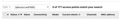 On the Map you don't get a proper icon for any CW9166 APs and they don't show any details, see below:
