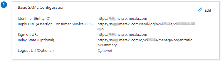 Also, the Login URL, MS Entra ID, and Logout URL (no screenshot provided) contain the same identifier information that appears in the Meraki tenant. Everything works.
