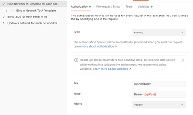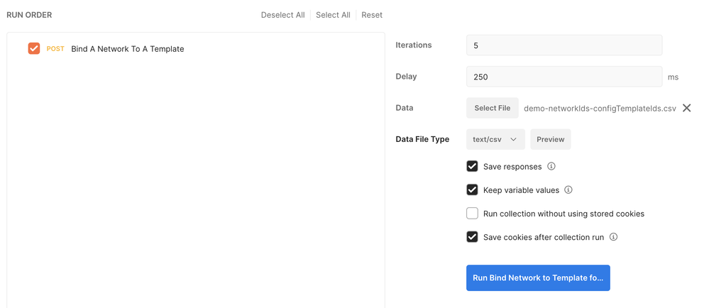 - Copy in the "Bind a network to a template" endpoint into your new collection. (delete any existing headers)
