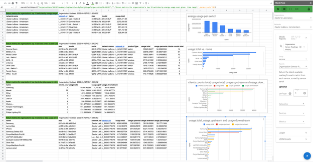 If you don't know, this Google Sheets add-on enables you to easily query the Meraki API and insert the formatted data into the Sheet. No coding required. Simply browse the available "reports" for the information you are looking for, fill in the query form and print to sheet!