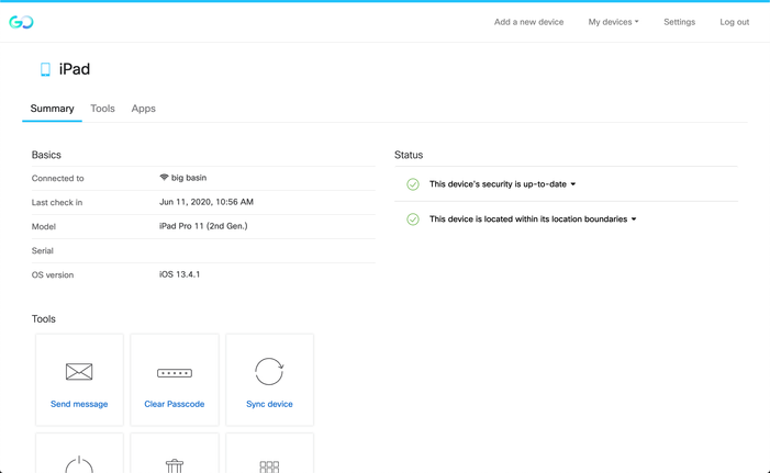 The SSP is where end users can access their MDM managed devices to do things such as sending device commands and downloading apps.