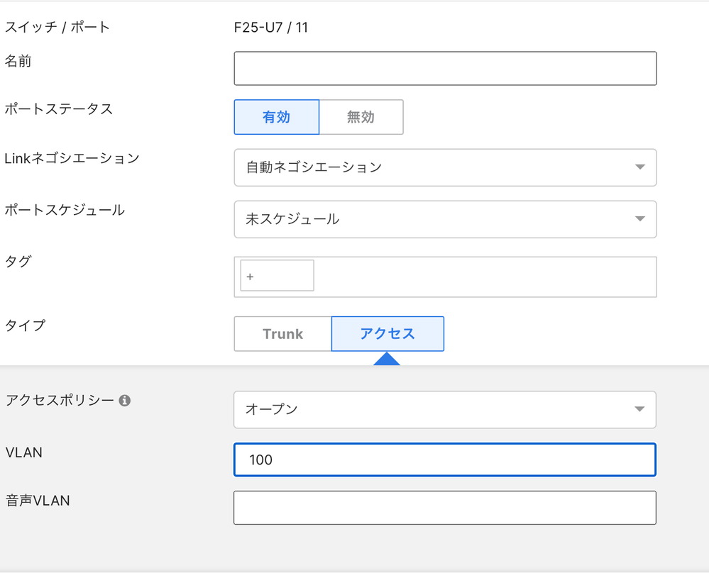 スイッチ> スイッチ> 対象スイッチを選択> 任意のポートのアイコンをクリック> 設定
