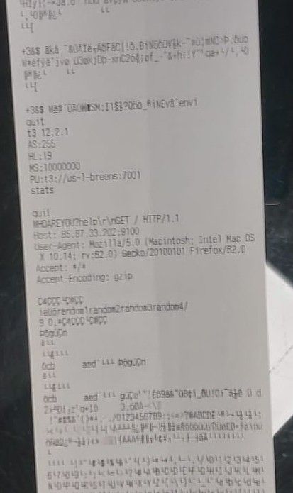 So, if I have a Brother DCP-L5500DN printer in my local network, which is composed only by 2 computers, 2 printers and 1 ticket printer, and in the ticket printer sometimes I get something like the thing showed in the photo and no one has done any "nmap" command... and apart from the random1random2random3random4 string, there are other suspicious strings like "WHOYOUARE", IP:9001, User-Agent...Macintosh....