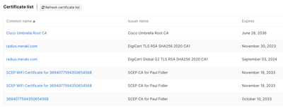 So, that's the first place. The second place is to check the installed certs on the device, which you've already done.