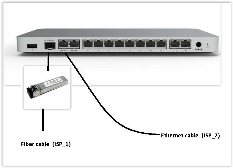Secondary ISP --> 200/5 MBPS line - will be connected to the MX via RJ45 cable -Port 2