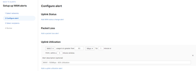 2- Insight -> Alerts -> Create an alert for EVERY single WAN Speeds by selecting the appropriate network tag :