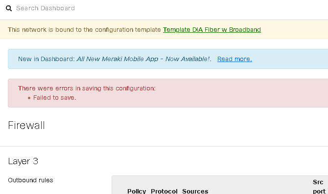 This works once when the rules are initially added. If I try to make any changes at all, though, saving fails with a generic "Failed to Save" error. If I want to change the description of a rule, save fails. If I want to add a rule, save fails. If I accidentally left the protocol at UDP and try to change it to TCP, save fails.
