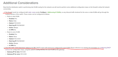 The Layer 3 Switch is using HP 3800 and all the Vlans created on it. All the Static Routes are created on MX Appliance and each Route is setup with a DHCP Server to provide DHCP services to the clients.