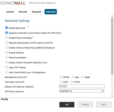 If using SonicOS Standard with Aggressive Mode VPN, make sure the remote end’s firewall name is specified on the host firewall’s VPN policy.