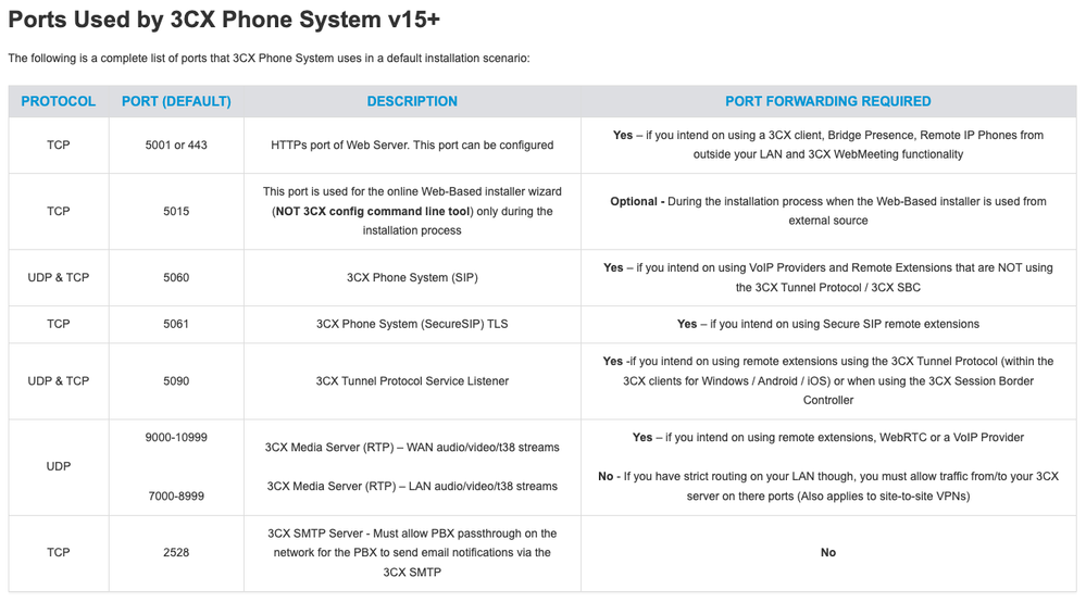 3CX indicates the following ports are used: