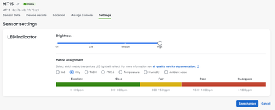 2️⃣People in the room can view the LED visual indicator on the sensor to understand whether they are breathing healthy air. The LED visual indicator on the sensor shows green, yellow, or red depending on the air quality in the room. The indicator can also be turned off in case organizations prefer not to show information to people in a room.