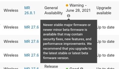 Meraki have flagged that one of our networks that contains one MR32 should be upgraded to 27.5.1, see the below, I'd have thought this will achieve nothing as aren't the wave 1 APs limited to 26.x and it is already on 26.8.1...