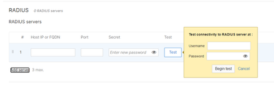 A recent RADIUS test encountered a connectivity issue. Please check your RADIUS server settings.