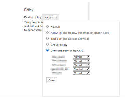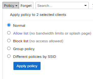 Policy column still shows "blocked", but when I select the devices and click on policy it shows following: