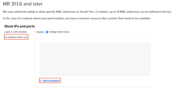 We have added the ability to allow specific MAC addresses to "break" the L2 isolation, up to 16 MAC addresses can be defined in this list.