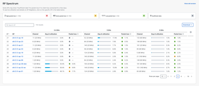 Administrators will be able to identify problematic channel utilization or packet loss situations, and hone in on specific APs for precise troubleshooting.