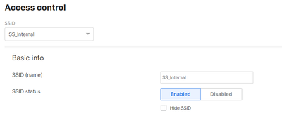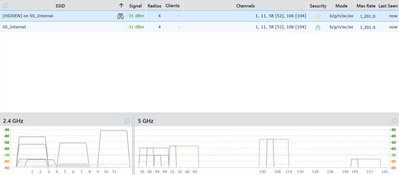 I'm having two MR36 APs. Both APs broadcast the SSID "SS_Internal" (not hidden). I recently downloaded "inSSIDer" wireless scanning software to my windows laptop and scanned to network to find out that there are two SSIDs which were broadcasting with the same SSID. One is hidden and the other is not. The hidden SSID is open as per the tool.